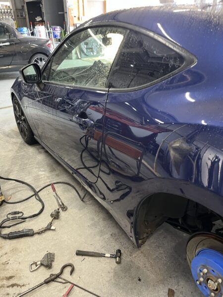 周南市のお客様より、大切な86の左側面修理をお任せいただきました。