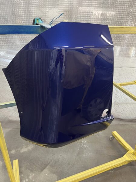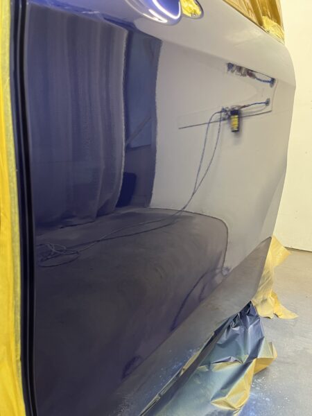 ポリッシャーによる無理な磨きに頼らず、スプレーの段階で純正の艶肌を再現する高い塗装技術で仕上げました。 トップコートのクリア膜を傷めない「塗り」にこだわることで、修理したことが分からない美しさと、長期的な耐久性を両立させています。
