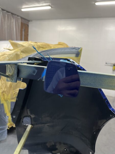 ▲ 塗装直後のチェック。鏡のような反射と純正の肌質をご覧ください。