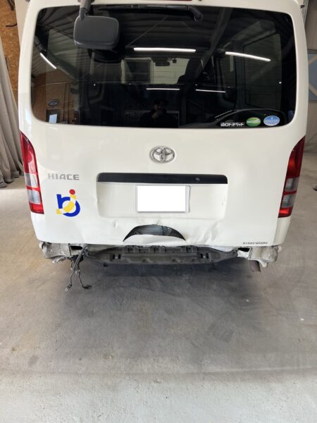 周南市のお客様より、ハイエースのリア大破修理のご相談をいただきました。