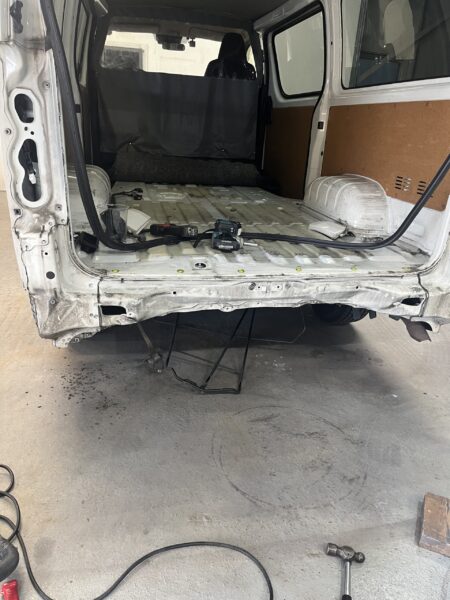 【前編】ハイエースのリア事故修理|フロアやインナーパネルの歪みまで。フレーム修正機で骨格を復元!