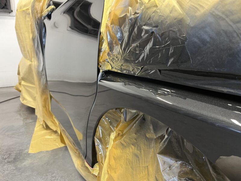 クリア塗装の厚みや乾燥状態を調整し、周囲のパネルと馴染むよう仕上げることで、光の反射でも違和感が出ない自然なボディラインを再現しています。