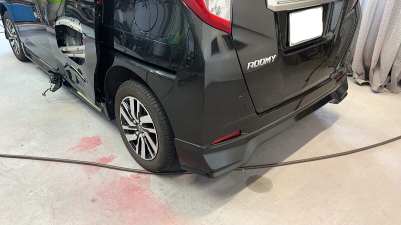 【車 修理】ルーミー 左側面(スライドドア・クォーター)の板金塗装|純正同等の塗装肌で自然な仕上がり