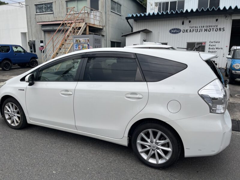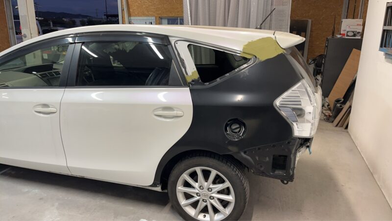 下松市の事故修理事例:プリウスαのリアドア・リアゲートも同時修復!【広範囲の板金塗装】