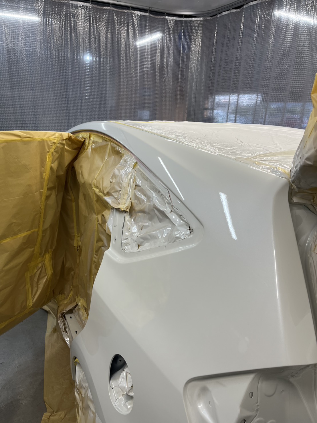 最終の塗装作業では、熟練の技術による調色と、純正塗装特有のクリヤーの艶肌に合わせた仕上げを行い、修理跡が分からない高品質な仕上がりを実現いたしました。